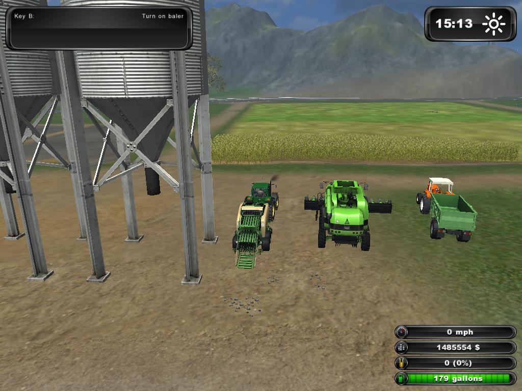 “B” Tuşu ile Makinemizi Çalıştırıyoruz. Ve Samanların Üzerinden Traktörümüzü Sürmeye Devam Ediyoruz. Yerdeki Samanları Toplayıp Makinemizin Balya Haline Getirmesini Bekliyoruz…