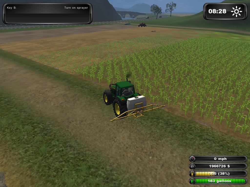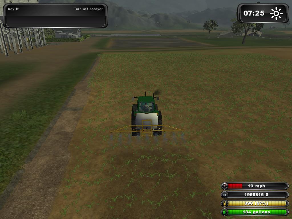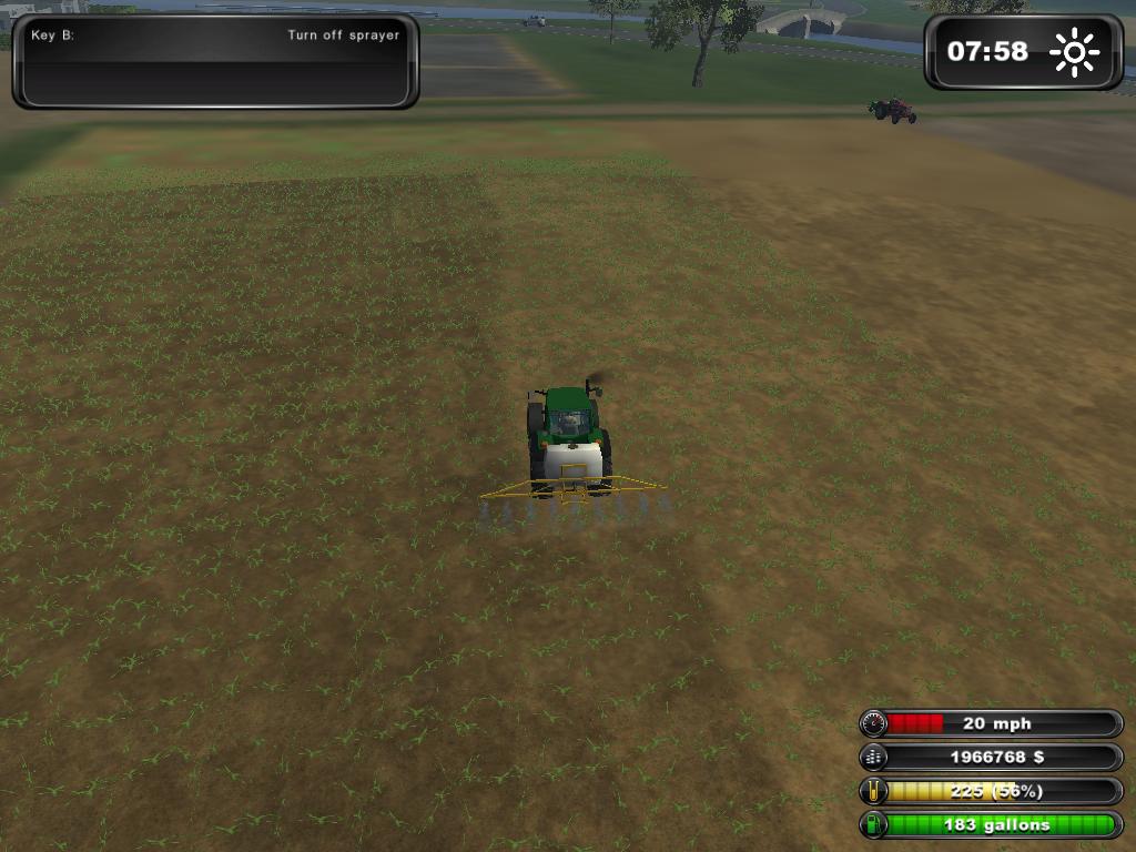 Yukarıdaki Resimde de Gördüğünüz Gibi Ektiğimiz Tohumlar Yeşermeye başladığı zaman İlaçlama Makinemize ilacı doldurup Tarladaki Verimi Arttırmak için İlaçlama yapmamız gerekiyor. İlaçlama Yapmak için ” B” Tuşu ile ekipmanın  Çeşme başlıklarını açıyoruz. Ve Traktörümüz 2. Viteste olmalı ki Yoksa atlaya atlaya ilaçlama yapıyor. Tarlamızı Bu şekilde Sonuna kadar İlaçlıyoruz…