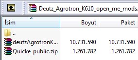 İndirdiğiniz Deutz_Agrotron_K610_open_me_mods.ZIP Dosyasını açınve içerisinde bulunan aşağıdaki 2 Adet.zip uzantılı Dosyayı