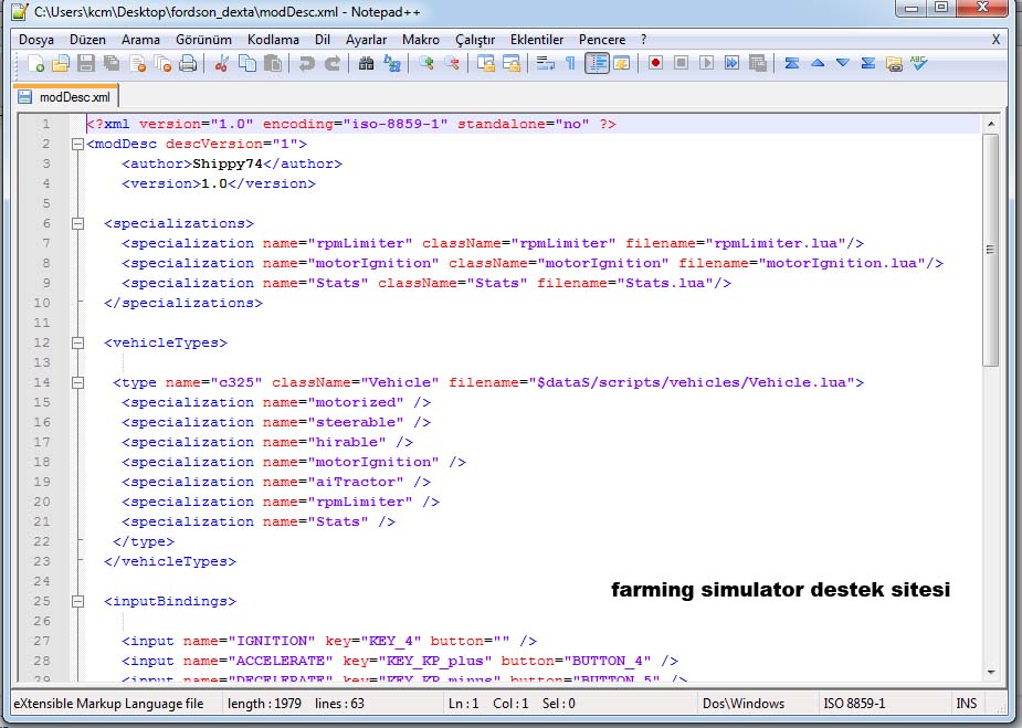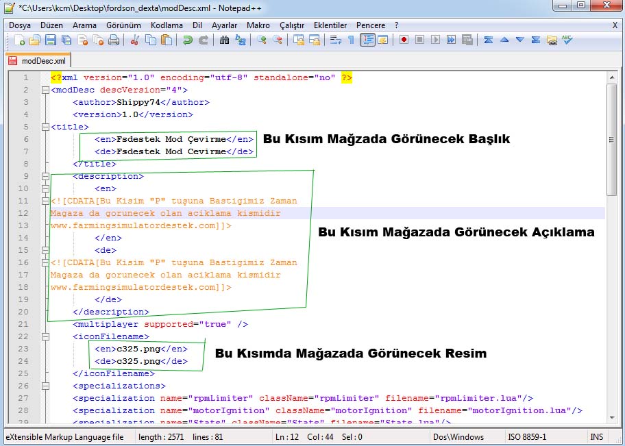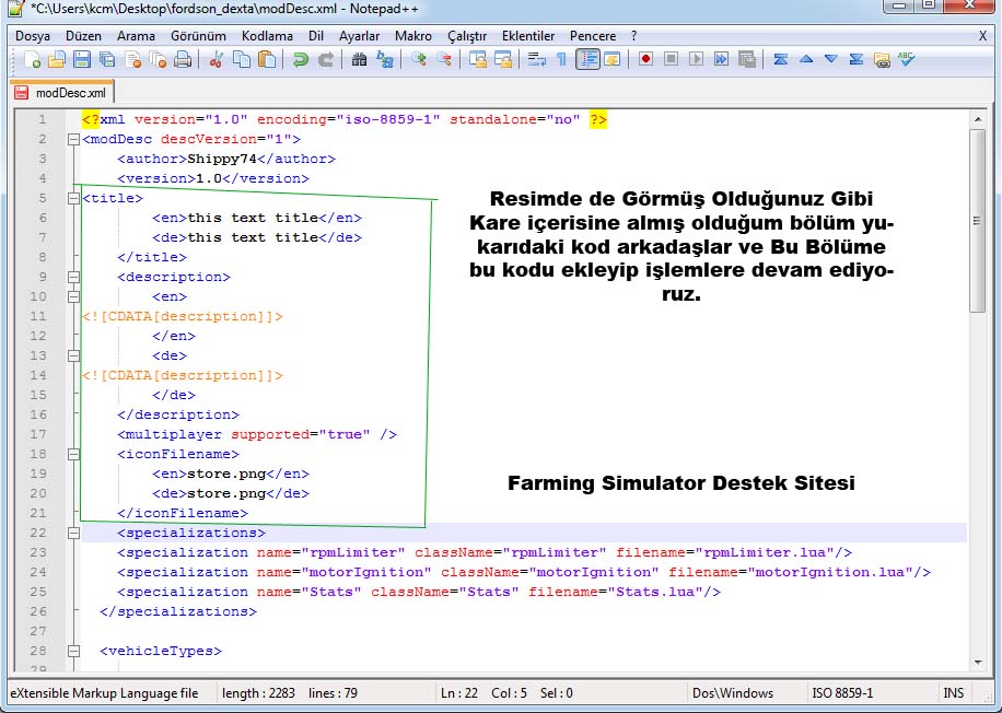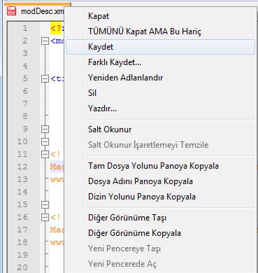 “Moddesc.xml” Dosyasını Artık Kaydedebiliriz bu dosyayı düzenleme işlemimiz tamamlandır