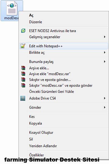 4.İşlem : Oluşan Klasörü Açıyoruz ve içerisinde ki Moddesc.xml Dosyasına Sağ Tıklayarak Notepad ++ Programı ile Çalıştırıyoruz (Resim3)