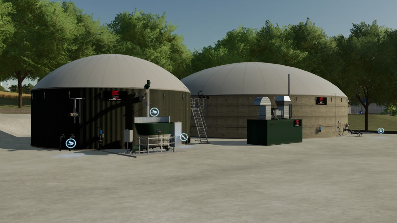 FS22’de bazı ürünler ve inek gübrelerini depolayabileceğiniz biyogaz tesisi modu. Haritada size ait arazilere yerleştirebilirsiniz.