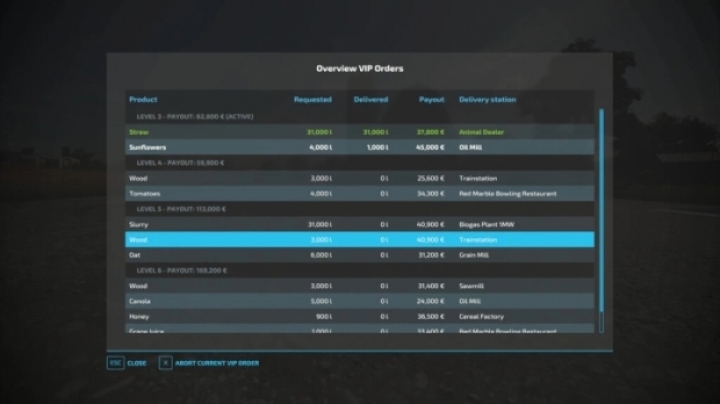 CTRL (SAĞ) + O tuşuna basarak açabileceğiniz Vip sipariş panelinde özel teslimatlar sizi bekliyor. Ürünlerinizi daha yüksek fiyata teslim edeceğiniz noktalar oluşturur. Böylece ürettiğiniz tarım ürünlerinden daha fazla para kazanabilirsiniz.